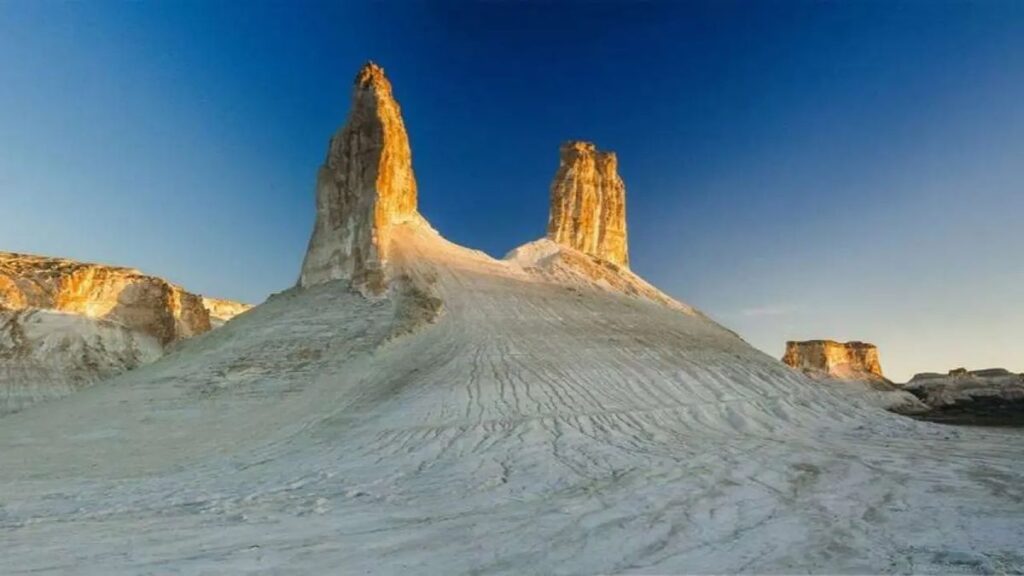 Walk along pristine desert paths, stop at panoramic viewpoints, and feel the silence and vastness of Mangystau around you. Along the route, discover subtle geological formations, hidden valleys, and remote desert scenery that few travelers ever witness.